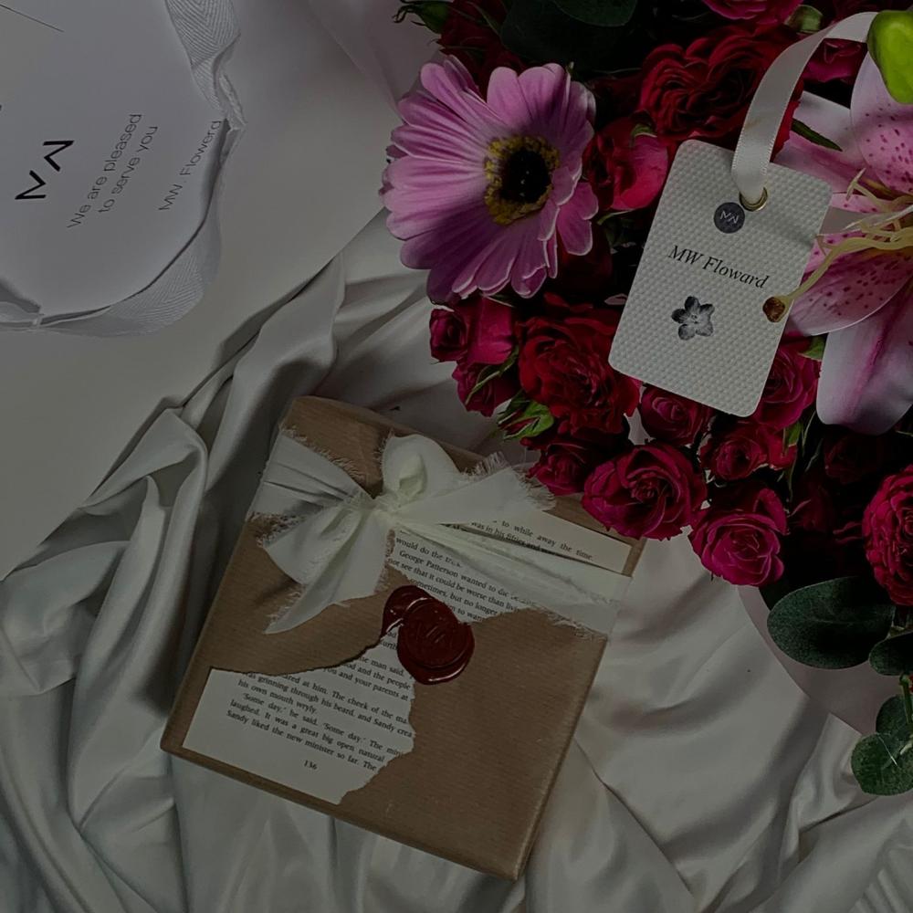 باقة ورد مع كوب الأنتيك بغليف راقي