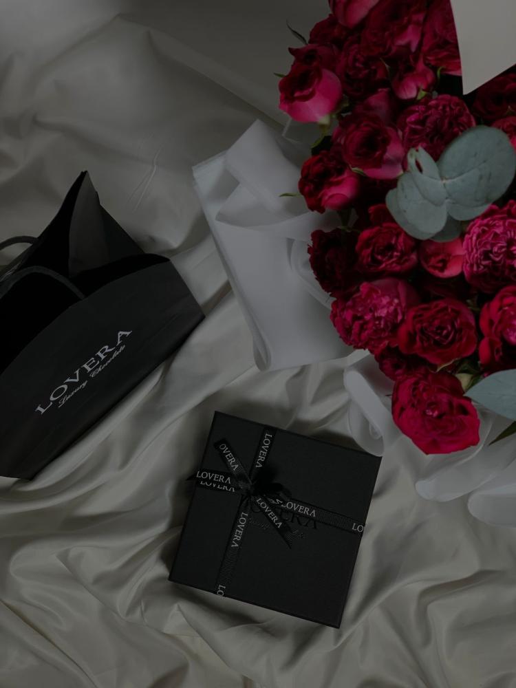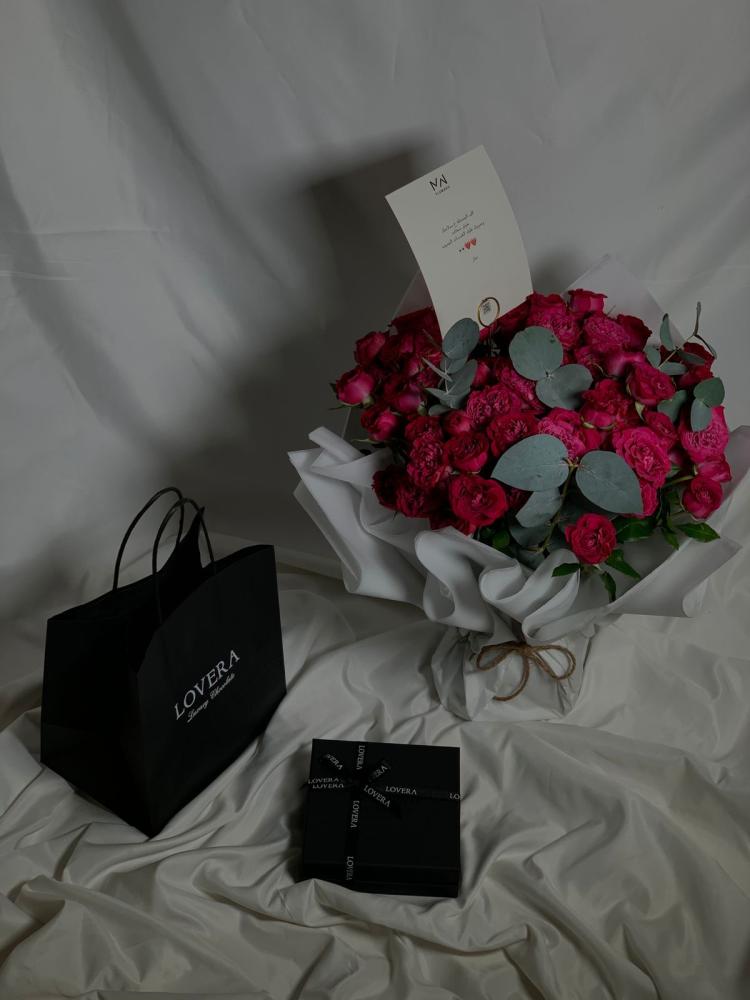 تشوكليت لوفيرا مع باقة ورد أنيقه